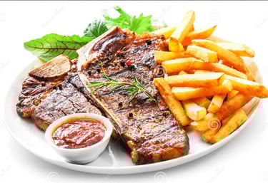 Grill Pork chopped,served with fries, salad or steam rice